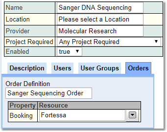 These properties allow the administrator to specify the resource(s) that will be used to fulfill the service. |