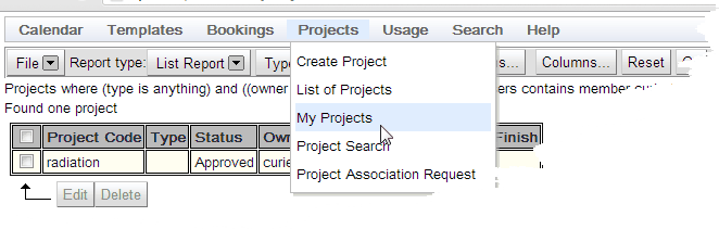The My Projects search page does a search for projects that the user have created or is a member off.