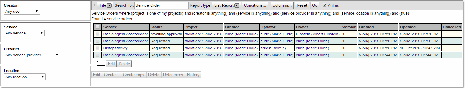 Service Orders where (project is one of my projects) and (creator is anything) and (service is anything) and (service.provider is anything) and (service.location is anything)
