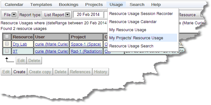 By default, the My Projects' Resource Usage page appears on the menu here: