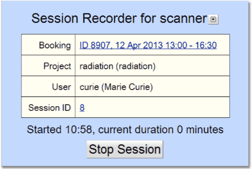 There is also a Stop Session button, which should be pressed when resource usage ceases.