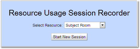 If there are no current resource usages being collected then the following form will come up to choose the resource and start a new session and then move to the Pre-Usage page.