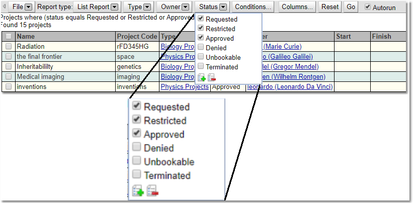 Approved:This is the normal status used for projects that are approved for making bookings. |