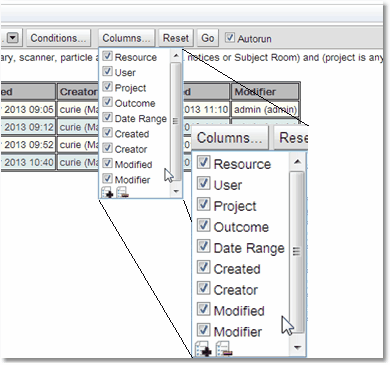 Autorun: If this button is ticked then searches will run as soon as any conditions change. If a number of the conditions of the search will be changed then it is more efficient if this is not ticked as each change will start a search and the appropriate transfer of data from the server.
