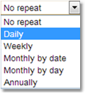 Once the type of repeat required has been selected, then choose how often the repeat occurs, every month, every other month etc.