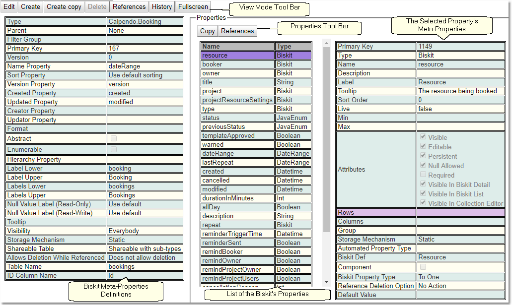 View mode allows the user to see each of the Biskits and their properties. You can also copy properties for later use in a different Biskit.