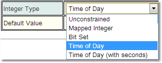 An integer (a whole number, no decimal information) property, as well as the normal settings required by a PropertyDef, must also specify its Integer Type. This indicates whether the content of the integer value should be constrained. The values allowed are: