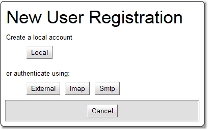 If registering a new user choose the system to be registered by. If using a non-local method the user will need to be authenticated by that system before filling in the new registration form.