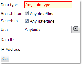 •Data ID, choose the unique ID number to search for. For example, if the user is interested in a project, and they know its ID is 42, then enter 42 here to restrict results to changes made to project 42.