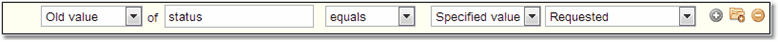 3.Add a condition: Status was Requested. Here, we use a Old Value type of Condition to put a condition on the value that the status had before the update.