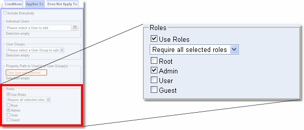 2.Under Applies To, untick Include Everybody, select Use Roles and tick the check box next to Admin