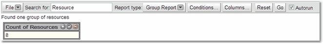 Shows the report as a table with one column showing a Count of Biskit Type. The table can then be extended to show other columns for properties available within the Biskit Type chosen.