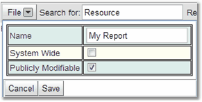 Once a search has been created that is useful the user may wish to save it for later use. This can be done using the drop down button from the File option on the toolbar and choosing Save As. This will save the search as a report accessible from the Search->Reports page. Using the File option the user can also load saved searches to run them, edit the properties of any saved searches and export search information to a file called report.csv.