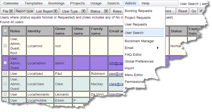 The alternative way to get a list of users is by using the Data Explorer and choosing User as the Biskit Type. It doesn't make any difference which method is chosen - these pages behave almost identically apart from User Search being dedicated to users, while Data Explorer can handle any Biskit Type.