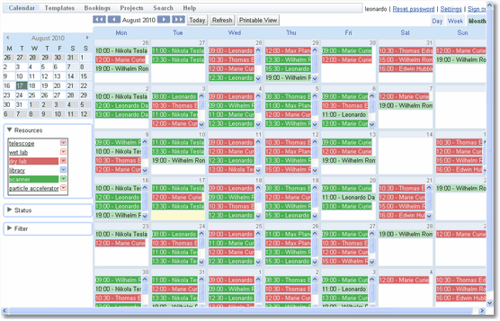 This is a month view. It can get very cluttered if bookings are not filtered.
