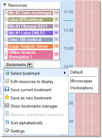 Use the Bookmarks dropdown to choose which bookmark is currently being viewed. Bookmarks can be system wide or on a per user basis. Click on any bookmark to see the resources that bookmark shows.For more information on how to set up and use bookmarks see the Bookmark Manager chapter.