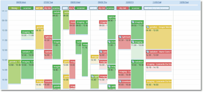 Here is an example of a weekly view showing from 08:00-16:00.
