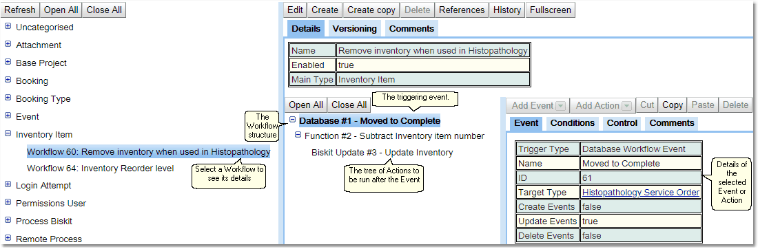 Sections of Workflows may be copied and pasted within a Workflow or to other Workflows. As Actions may refer to parent Actions/Events for information, some of this information may be lost when copied and a popup will show this information and so needs to be checked thoroughly.