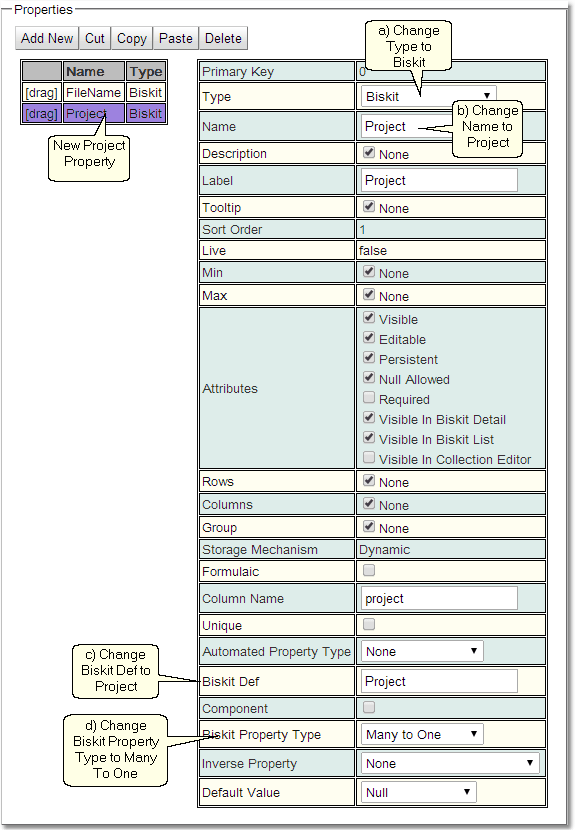 a)Change Type to be the new BiskitDef name, in this case ProjectAttachment.