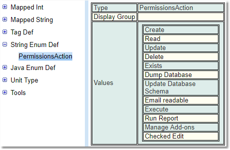 A String Enumeration is like a Mapped String in which the name and value are always the same. A property with a type of StringEnum will be editable with a drop-down list box showing all the values in the enumeration.