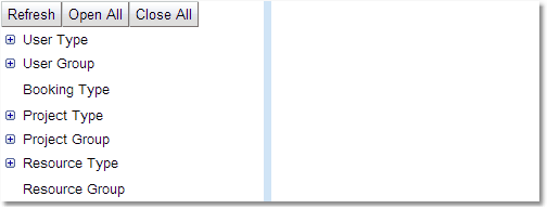 2.The left pane: this allows the selection of a type or group or an item within a type or group