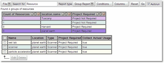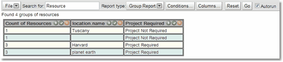 Once the columns have been chosen the table will redisplay using the appropriate number of rows to display the records, grouping records by the columns chosen giving a count in the first column.