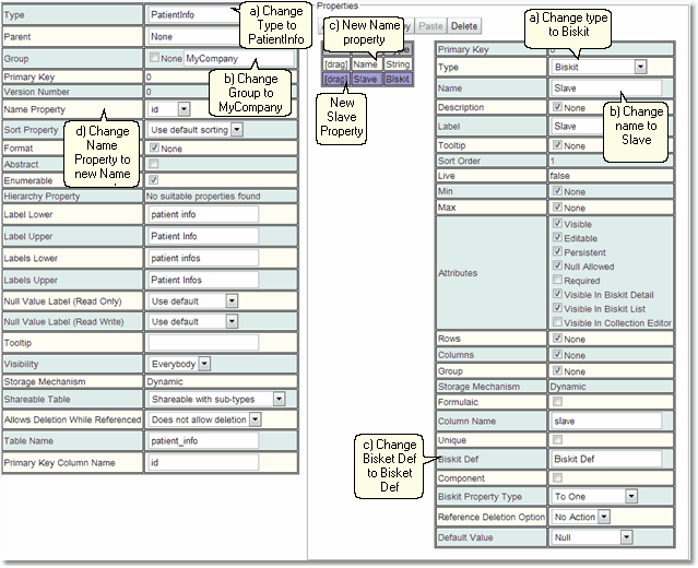 a)Change Type to be the new BiskitDef name, in this case PatientInfo.