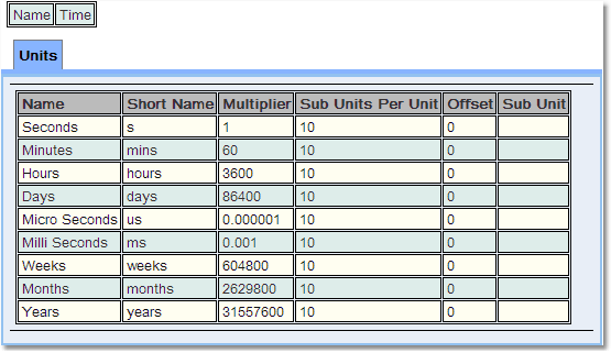 There are four types of units Length, Temperature, Time, Weight. Users can also add their own units into Exprodo SDM, Each type of unit has a number of options, and these are: