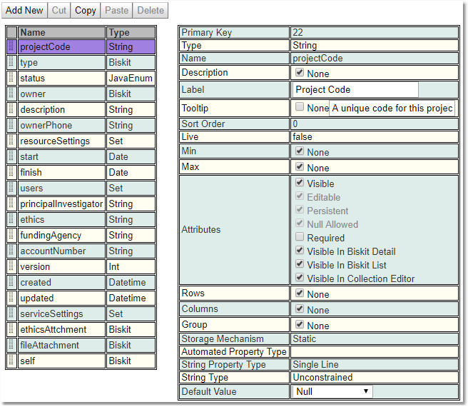 An example of adding a property to the Biskit of type Project called ProfessorSignOff, of type boolean which is required to always have a value and starts with the value False.