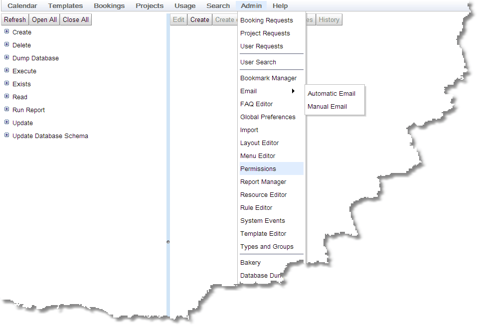 The Permissions Editor shows all the Permissions and allows the user to create, update and delete them. By default, it appears on the menu here: