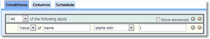 The conditions (if any) associated with the report. (see the Setting Search Conditions chapter for more information about conditions and how to edit them) |