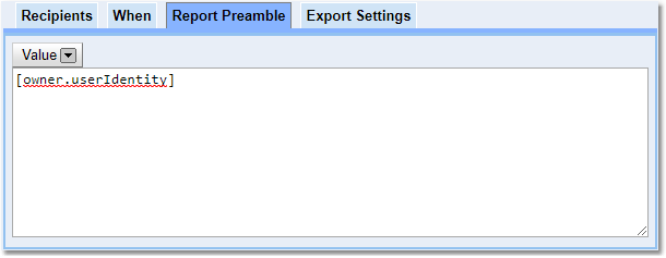 Select the Report Preamble tab to add some text to the detail of the email