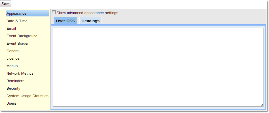 ➢Appearance controls the look and feel of Exprodo SDM. ➢Buttons controls what buttons appear when viewing a single biskit or a list of biskits. ➢Date And Time specifies date and time formats. ➢Email controls whether Exprodo SDM is allowed to send email, and specifies the gateway and other email related settings. ➢Event Background controls the background shading for events allocated to the user, or other users. ➢Event Border controls the type of border an event will have depending on its status, time accuracy or whether it is not applicable. ➢General is a place for settings that don't fall into any other group. ➢Licence for entry of the licence key and to see whom the Exprodo SDM is licensed to and with what limitations. ➢Menus to select the menus that should be used for new users. ➢Network Metrics to control network metrics that should be gathered. ➢Reminders to define which group of users will get reminders for unallocated events. ➢Security to control security-related settings. ➢System Usage specifies whether to record system usage statistics and the time resolution to use. ➢Users specifies user-related settings such as session time out length and minimum password length. |