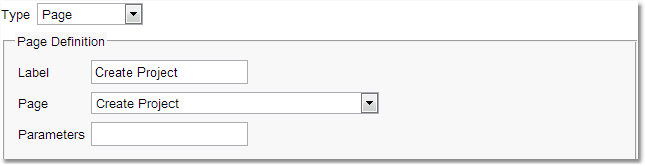This type of menu item is one that shows a page. When menu item is set to Page, the following properties need to be set: |